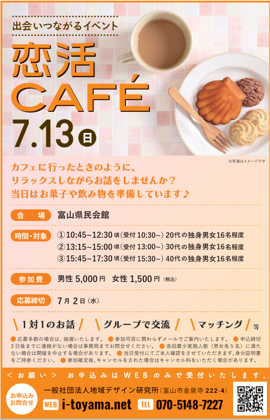 【終了しました】<7/13(日)>恋活CAFE ♥①・③女性追加受付中♥